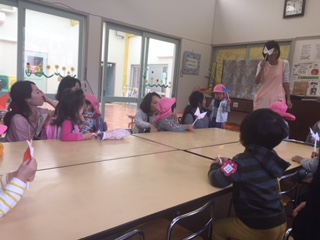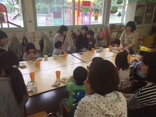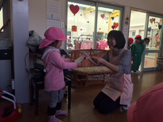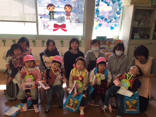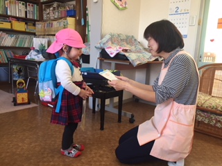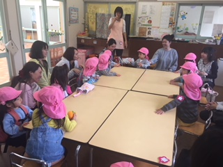 今日は最初の登園なのでお家の方と一緒に幼稚園にきました。