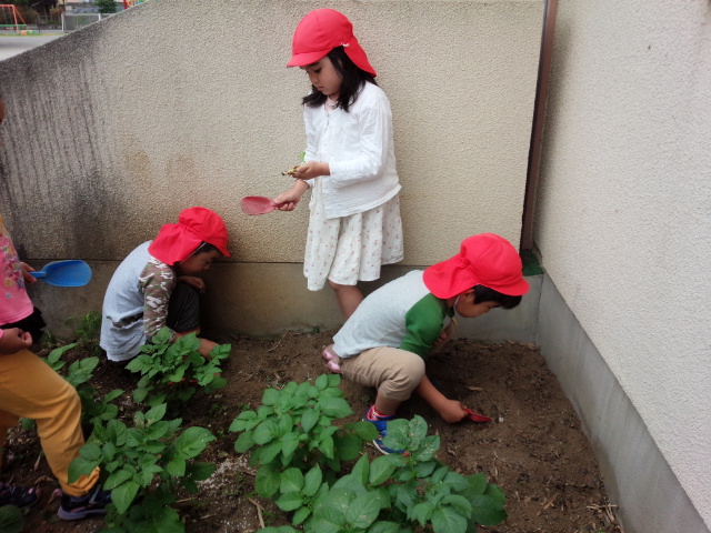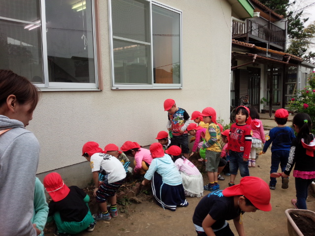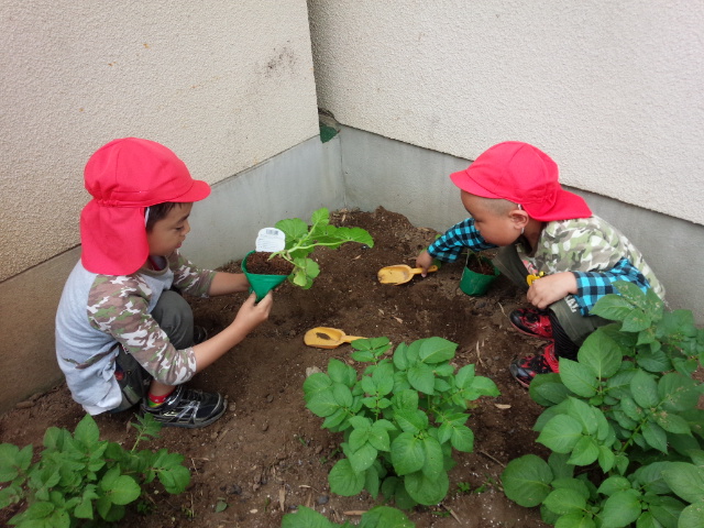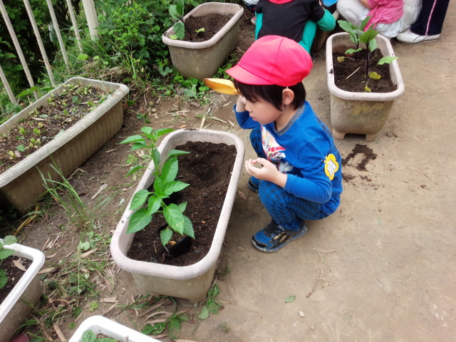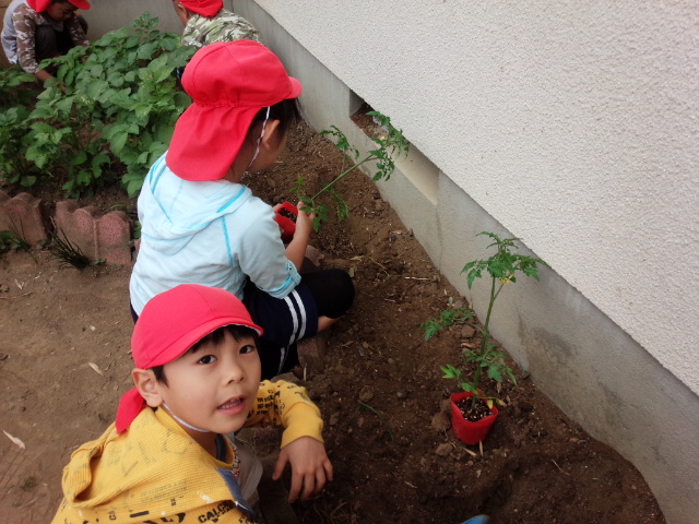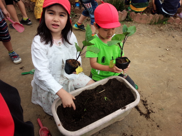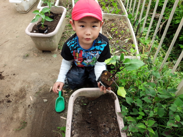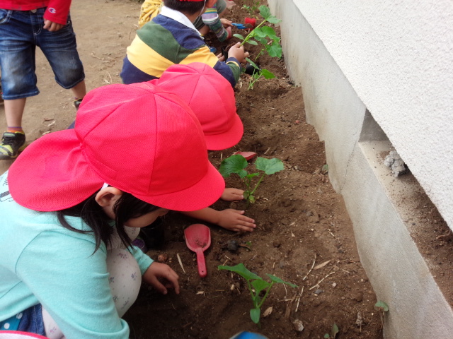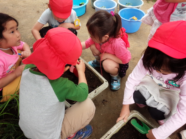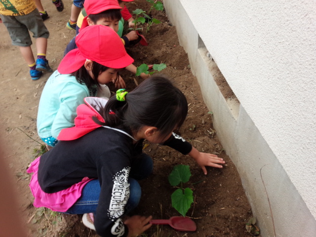 きく組では、幼稚園の畑に夏野菜を植えることにしました。