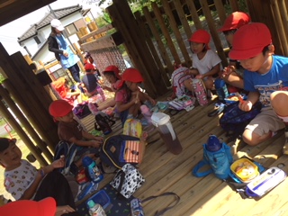屋根の下で食べる子、ゆれるわたり橋で食べる子、