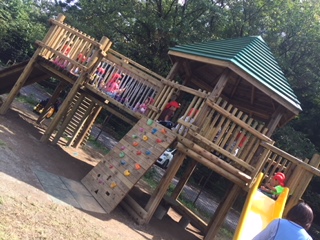 木製遊具でお弁当をたべました!