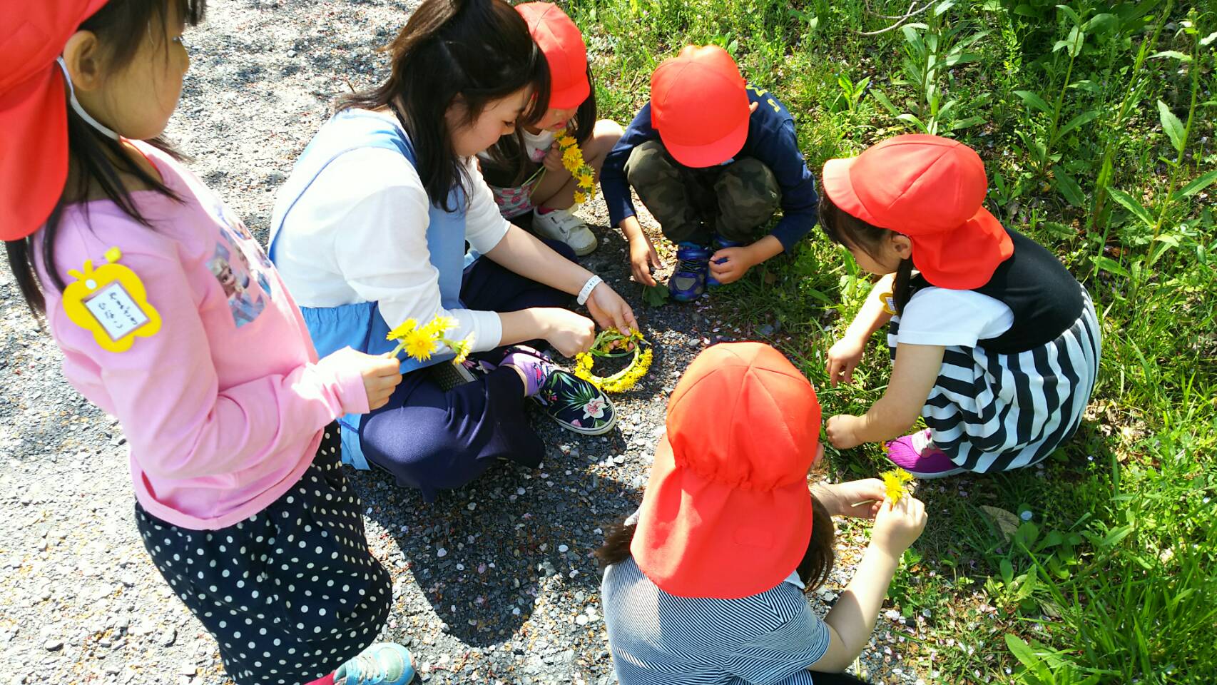おはなの冠を作っています