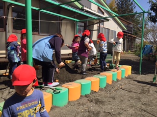 春休み中に砂場の砂を増やしたので砂がもりもり!