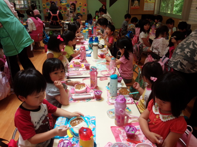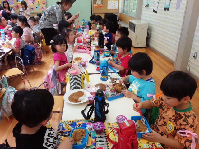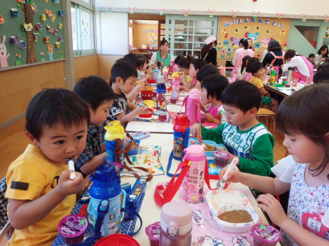 お母さんたちが作ってくださったおいしいカレーをいただきます。