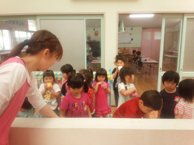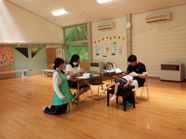 誰も泣かずに大きなお口を開けて先生に見ていただきました。