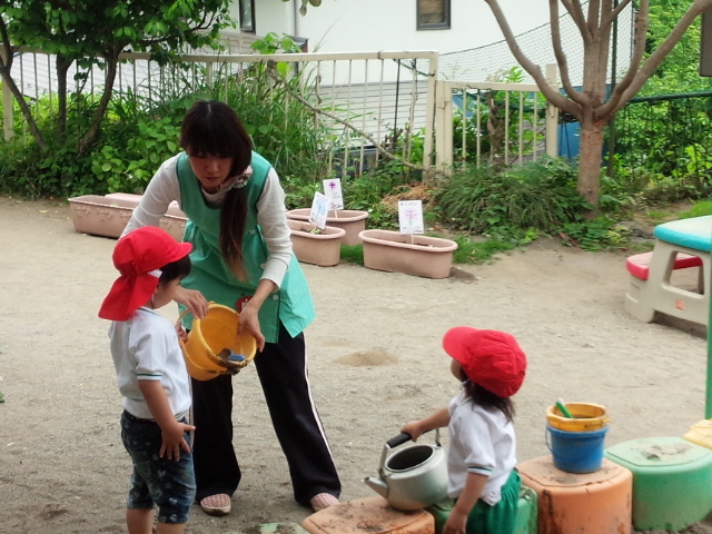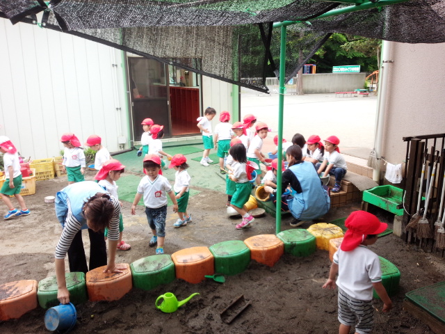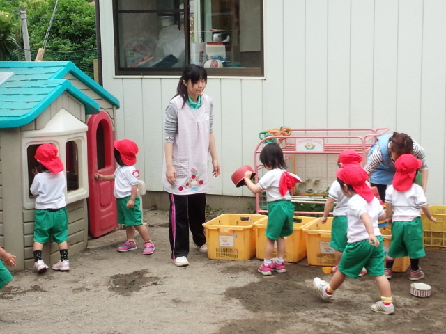 そのあと、お砂場の道具をみんなで洗って片づけてくれました。