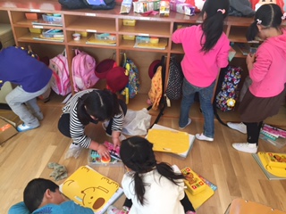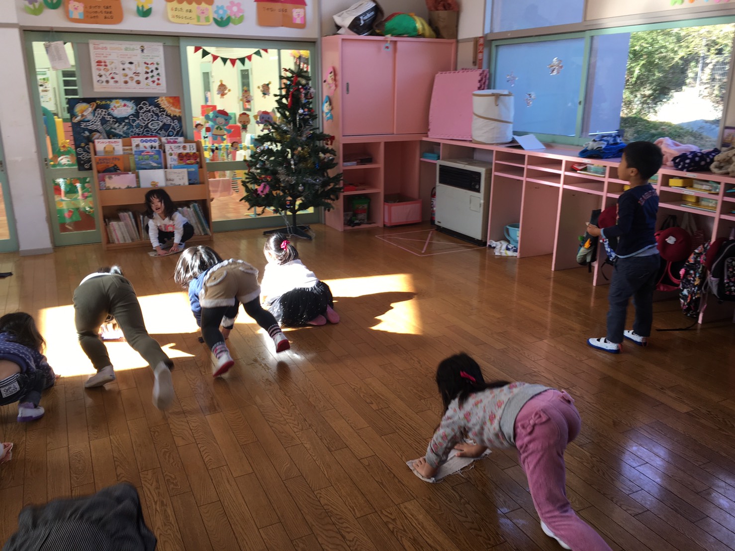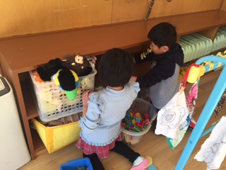 おもちゃやロッカーの中を拭いたり、