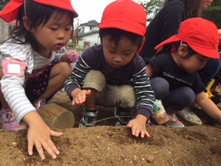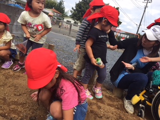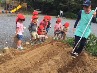 幼稚園の畑で、ジャガイモ・かぼちゃなどを収穫