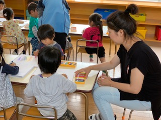 ママ先生もお部屋の先生と一緒にクラスに入ります。
