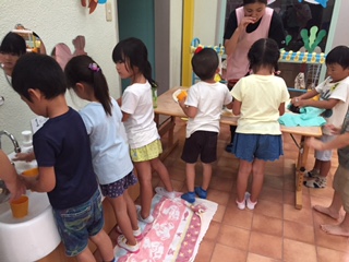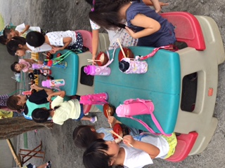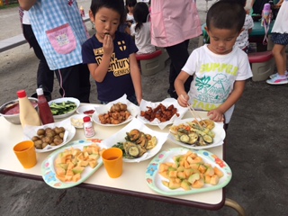 おうちの方のご厚意でたくさんの食べ物が集まりました