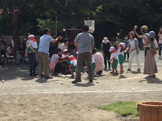 子どもたちと玉入れです。