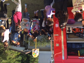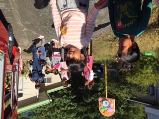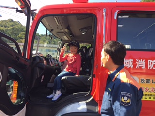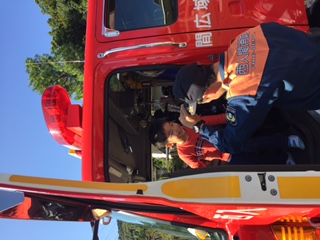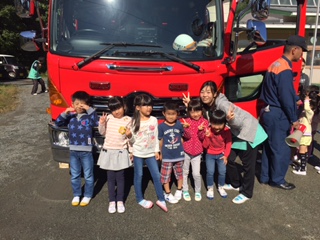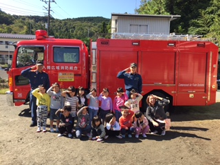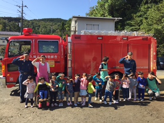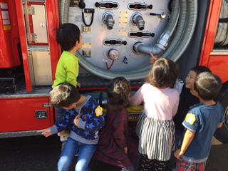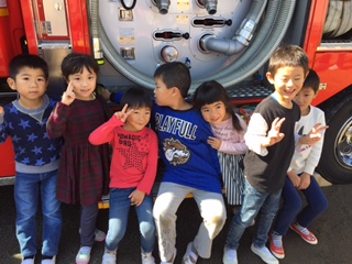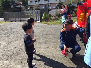 先生たちが消火訓練をし、その後消防士さんからのお話を聞きます。