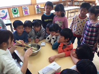 ごぼうをいれていたお水が色がだんだん変わってきたね