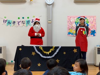 お楽しみの時間にはおかしなサンタが2人やってきました!